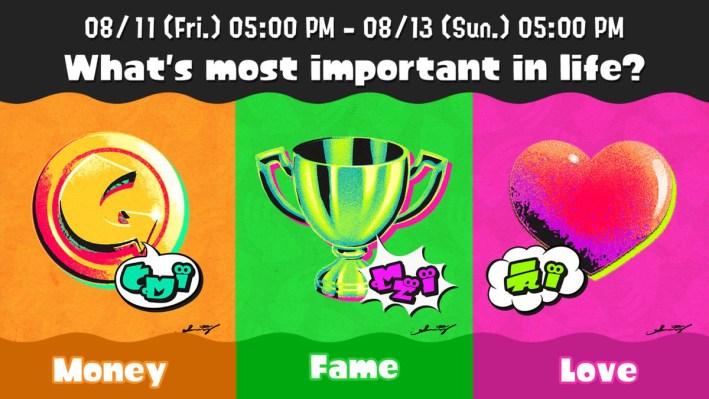 Splatoon 3 أغسطس 2023 يريد Splatfest من اللاعبين القتال من أجل المال أو الشهرة أو الحب
