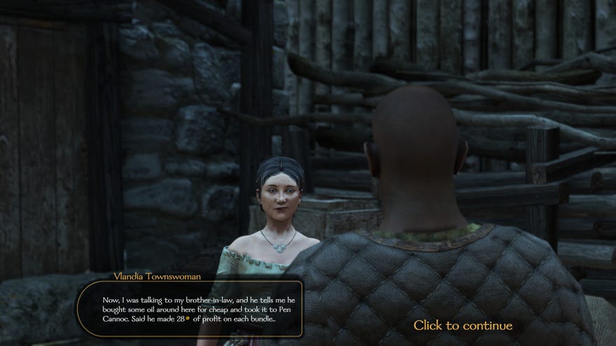 Gosip minangka perkara sing penting kanggo njupuk kauntungan nalika entuk dhuwit akeh dhuwit ing Bannerlord. Kabeh desas-desus sing sampeyan temokake bakal ana ing endi barang tartamtu sing adol luwih saka rega biasane. Kadhangkala mung nambah paningkatan cilik, nanging kanggo barang-barang sing paling akeh bathi bisa luwih dhuwur.